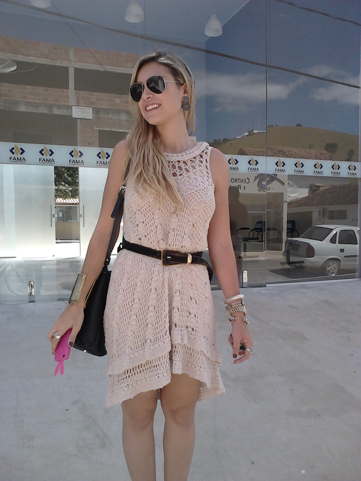 Olá meninas ando beeeeeem sumida por aqui neh, mais é porque ando bem atarefada e nunca tenho tempo, não é comum ver pessoas andando com peças de crochê pelas ruas de Mantena, até ai normal neh cidade de interior é mais ou menos assim, mas quando estava indo pro meu serviço vi uma moça muitoooooooo chique com um vestido deslumbrante de crochê no tom de rosa bebê, nem sabia se eu ia pro meu serviço ou parava a moça pra tirar uma foto,(rsrs) o meu irmão me apelidou de Mabi da novela Ti-ti-ti porque parava as pessoas na rua pra tirar foto...